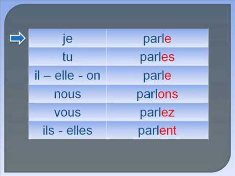 Regarde, écoute, et répète le présent du verbe PARLER.